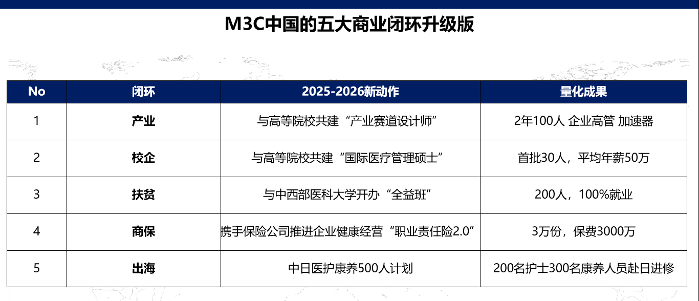 - 2018-至今 创立M3C中国,推进医护药康养大健康产业“中国本土化”的开发与战略部署。