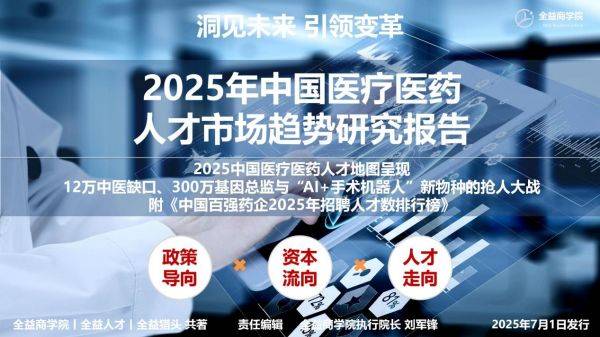 医疗医药人才版图重构:7月10日,全益商学院携手全益猎头、全益人才发布《2025中国医疗医药人才市场趋势研究》,首次以“政策×资本×技术”三维共振框架,揭示基因CMC、ADC工艺、AI制药等四大人才断层及区域“薪酬-估值”剪刀差,被业界视为重新定义医药人才战争的里程碑。