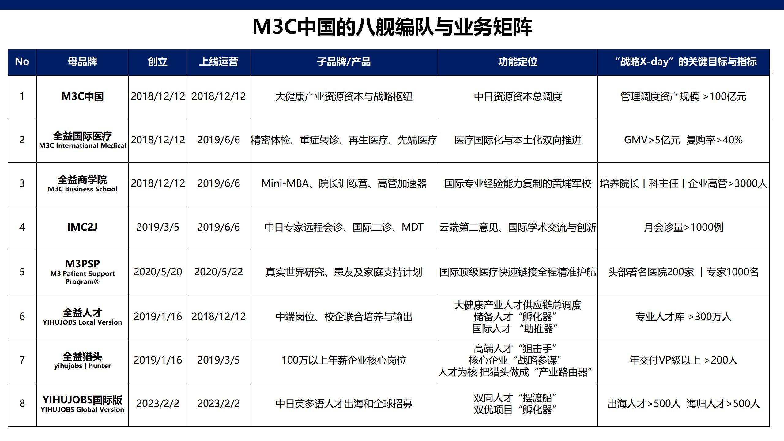 “2018年起,我先后策划优选带回中国45个项目,比如全球顶级基因检测与治疗技术,肿瘤靶向药等项目,因国情政策水土不服与政策开放时机不对,加上疫情的长周期负面影响,无法与上下游合作伙伴全链条快速协同展开,政策调研协调试错成本太高等原因陆续关掉十几个项目,这也是本土化的必然过程。但如果能把日本30年的经验压缩成中国10年可复制的模板,这些投入和牺牲也是值得的。而今,八舰编队雏形渐成亟需深耕优化并创新拓宽边界。”